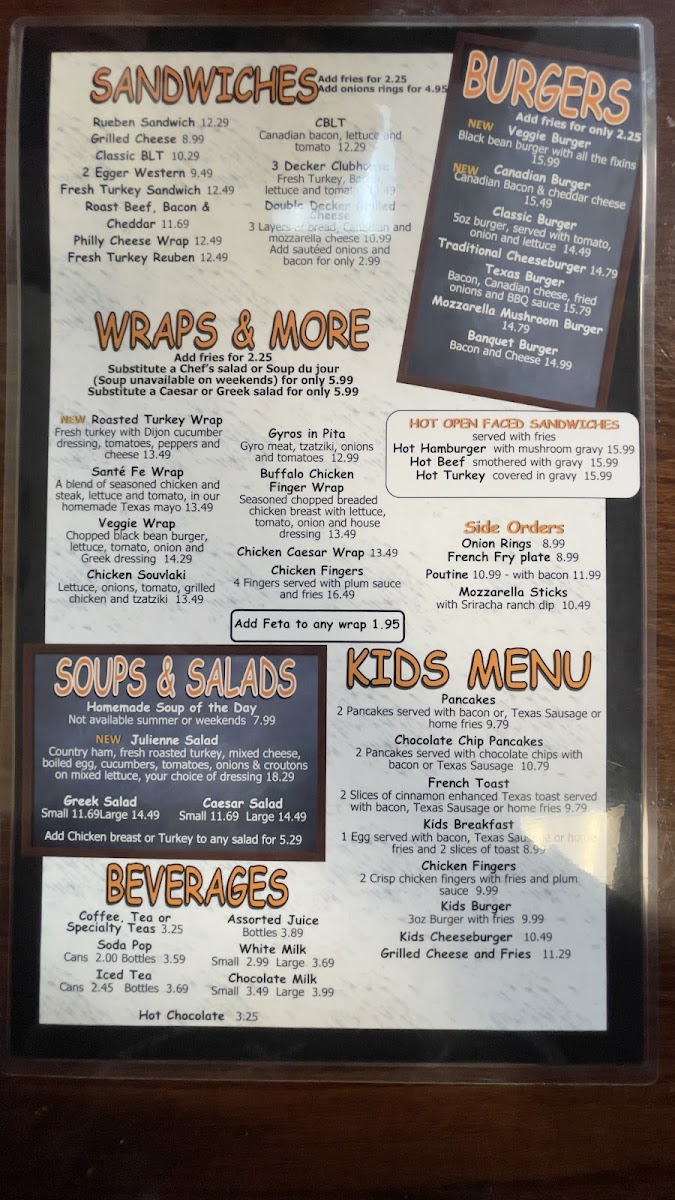 The easygoing vibe of the restaurant complements the menu well—meals here feel like the kind of food you’d enjoy with family or close friends, backed by warm service and a relaxed dining space. Alongside the main dishes, there is a selection of side orders such as onion rings and poutine, plus comforting beverages including hot coffee, assorted juices, and traditional English breakfast tea that round out the experience.